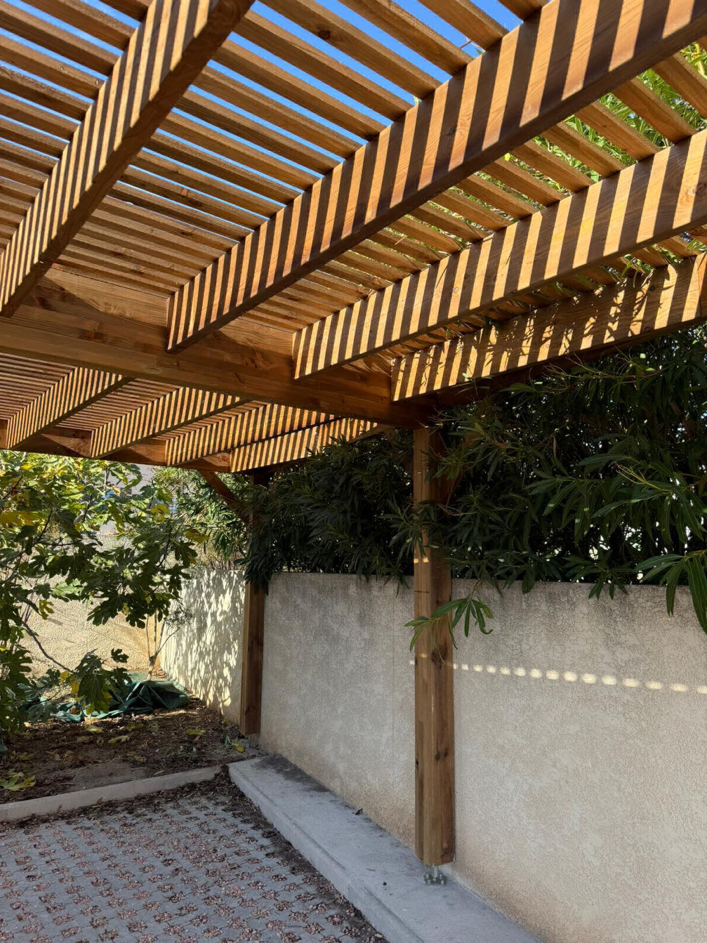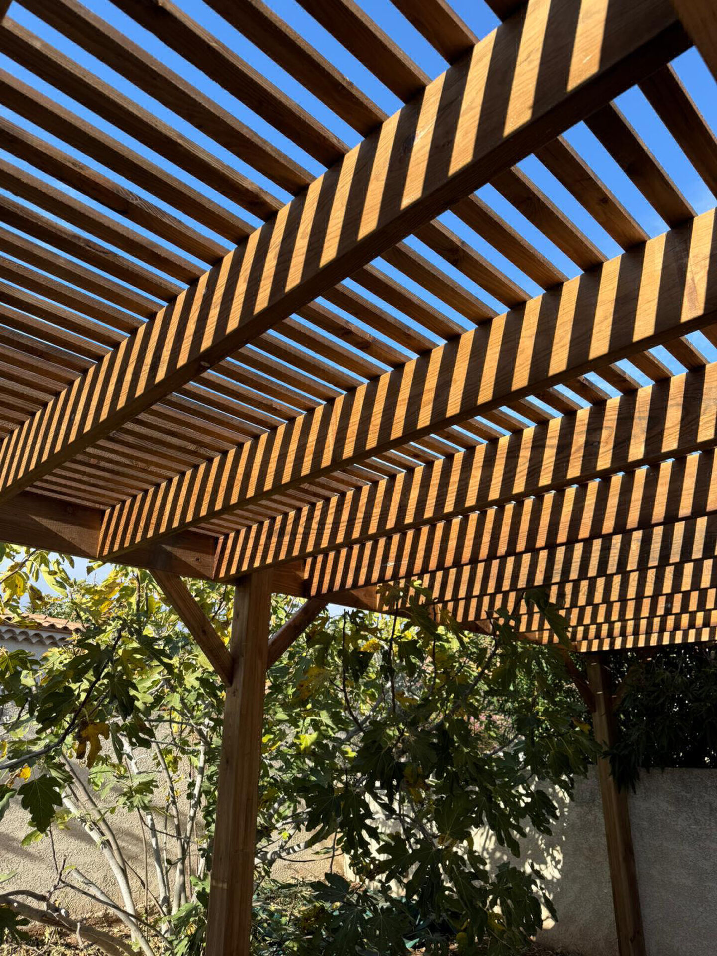 Création de pergola ossature bois avec structure extérieure sur mesure et toiture ajourée à Sète (34200), Hérault